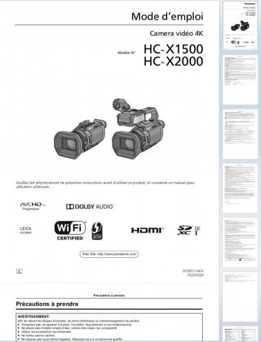 Notice Panasonic HC-X1500 / HC-X2000 (en français)