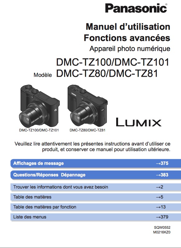 COMMENT ÇA MARCHE ? Panasonic Lumix DMC-TZ100 / TZ80, notice d'utilisation, mode d'emploi (document pdf propriété de Panasonic)