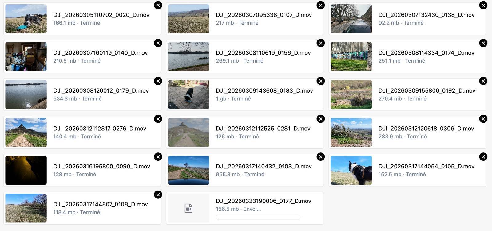 44 fichiers vidéo + multiples fichiers photo en JPEG et DNG