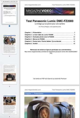 PDF sans publicité du test du Panasonic DMC-FZ2000 Ce PDF payant reprend dans son intégralité le test du même nom. Ce test se trouve ici. L'achat du PDF vous permet de lire le test en dehors de son environnement Web et sans aucune publicité. Le PDF est une conversion de l'article Web, induisant quelques modifications graphiques mineures (saut de paragraphe, photos) Il offre une alternative à la souscription de l'abonnement Premium ou l'achat à l'unité si vous avez des besoins ponctuels de consultation et souhaitez un PDF. Sa lecture est réservé à votre usage personnel. Le PDF ne doit pas être distribué ni modifié ni mis en vente. Cliquez ci-dessus et une fois la commande passée, vous pourrez télécharger le fichier PDF en allant en rubrique Téléchargement des PDF des Articles / Tests. Vous recevrez également un email vous indiquant le lien et vous confirmant la validation de votre achat. Prix du PDF : 2 euros TTC. Prix des PDF suivants : 1,5 euros. Paiement en ligne sécurisé par CB ou PayPal.