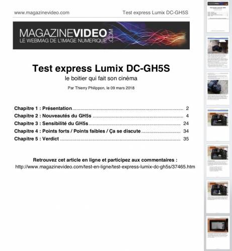 PDF sans publicité du test du Lumix DC-GH5S Ce PDF payant reprend dans son intégralité le test du même nom. Ce test se trouve ici. L'achat du PDF vous permet de lire le test en dehors de son environnement Web et sans aucune publicité. Le PDF est une conversion de l'article Web, induisant quelques modifications graphiques mineures (saut de paragraphe, photos) Il offre une alternative à la souscription de l'abonnement Premium ou l'achat à l'unité si vous avez des besoins ponctuels de consultation et souhaitez un PDF. Sa lecture est réservé à votre usage personnel. Le PDF ne doit pas être distribué ni modifié ni mis en vente. Cliquez ci-dessus et une fois la commande passée, vous pourrez télécharger le fichier PDF en allant en rubrique Téléchargement des PDF des Articles / Tests. Vous recevrez également un email vous indiquant le lien et vous confirmant la validation de votre achat. Prix du PDF : 2 euros TTC. Prix des PDF suivants : 1,5 euros. Paiement en ligne sécurisé par CB ou PayPal. -