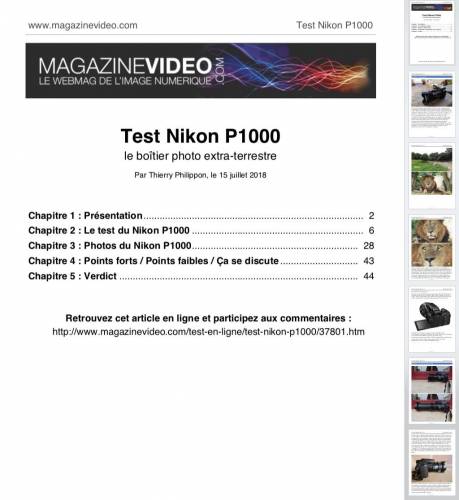 PDF sans publicité du test du Nikon P1000 Ce PDF payant reprend dans son intégralité le test du même nom. Ce test se trouve ici. L'achat du PDF vous permet de lire le test en dehors de son environnement Web et sans aucune publicité. Le PDF est une conversion de l'article Web, induisant quelques modifications graphiques mineures (saut de paragraphe, photos) Il offre une alternative à la souscription de l'abonnement Premium ou l'achat à l'unité si vous avez des besoins ponctuels de consultation et souhaitez un PDF. Sa lecture est réservé à votre usage personnel. Le PDF ne doit pas être distribué ni modifié ni mis en vente. Cliquez ci-dessus et une fois la commande passée, vous pourrez télécharger le fichier PDF en allant en rubrique Téléchargement des PDF des Articles / Tests. Vous recevrez également un email vous indiquant le lien et vous confirmant la validation de votre achat. Prix du PDF : 2 euros TTC. Prix des PDF suivants : 1,5 euros. Paiement en ligne sécurisé par CB ou PayPal. -