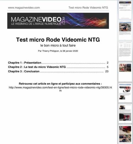 PDF sans publicité du test du Micro Rode Videomic NTG