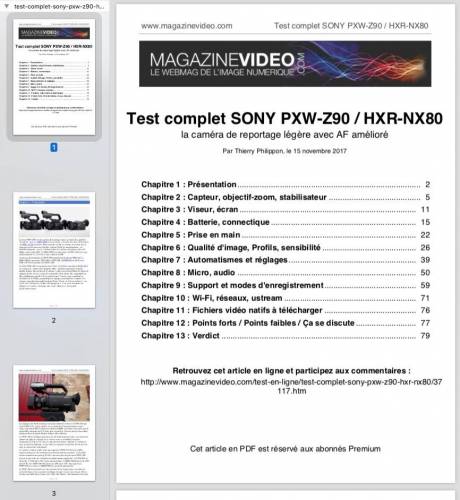 PDF sans publicité du test du Sony HXR-NX80 / PXW-Z90